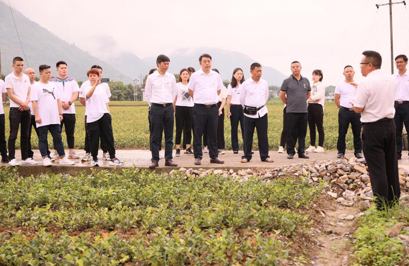 上午8時30分,全體黨員干部統一著裝前往苗圃基地參觀考察。據基地負責同志介紹,公司積極踐行“黨建+”的模式,以黨建促生產,苗圃基地發展現已初具規模,僅僅半年時間,建設完成380畝的苗圃基地。